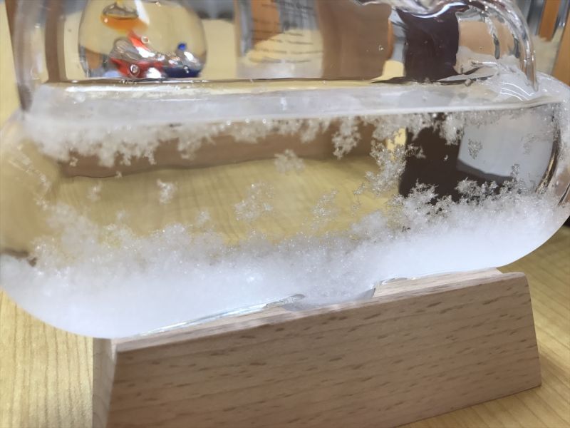 複数の化学薬品をアルコールに溶かしてガラス容器に詰めたもので、天候によって結晶の様子が変化すると言われています。